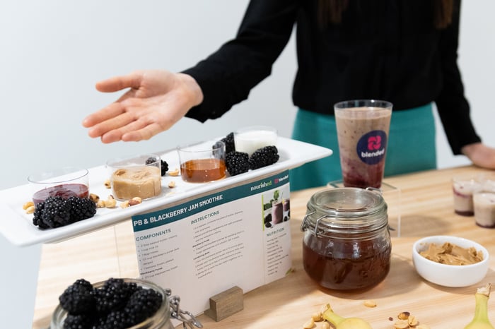 Nourished consists of live demos, where participants gather around the table to meet with RDs and chefs and explore ways to incorporate healthy choices into their lives. For example, we have a Blended feature that highlights heart-healthy smoothies. As part of this program, we showcase three smoothie options, allowing participants to taste each.